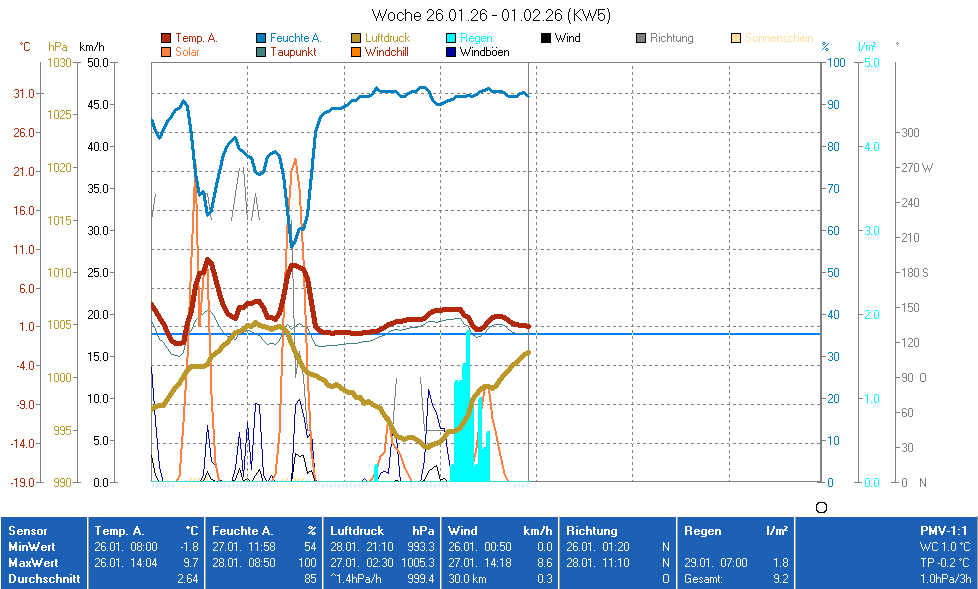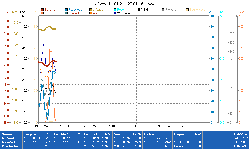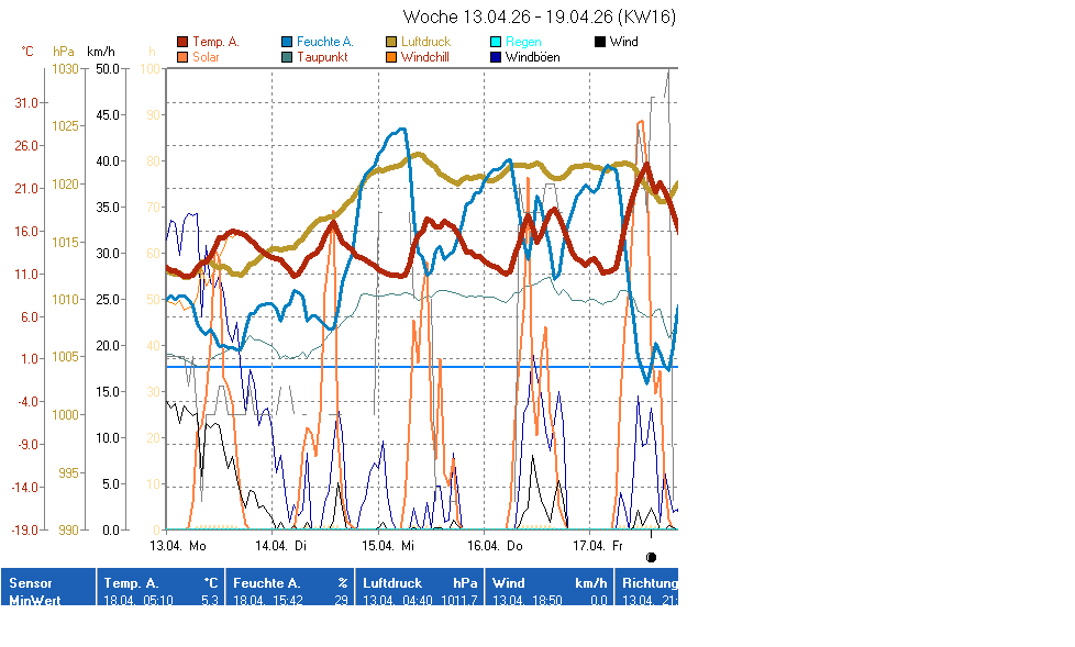 Der Luftdruck ist auf Standorthöhe 181 m bezogen!